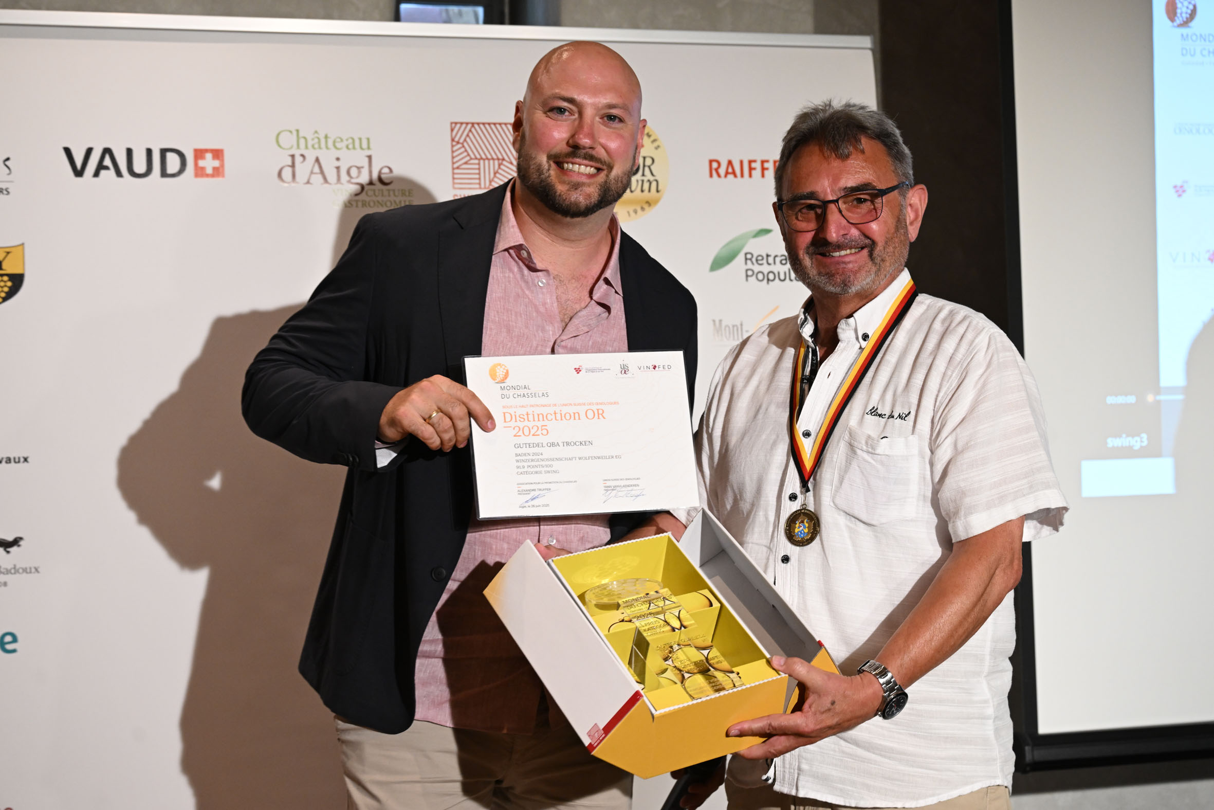 Robert Taramarcaz (à droite) vainqueur de la catégorie Chasselas au GPVS
